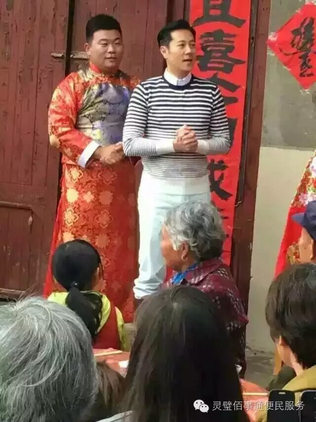 安徽卫视摄制组及军旅著名歌星(蔡国庆)于今天上午9点赴菠林村专题采访报导菠林喇叭(周家班)