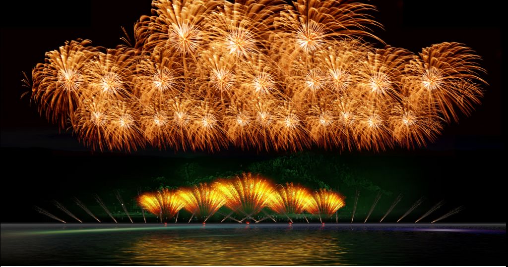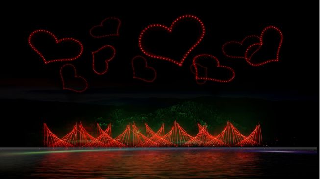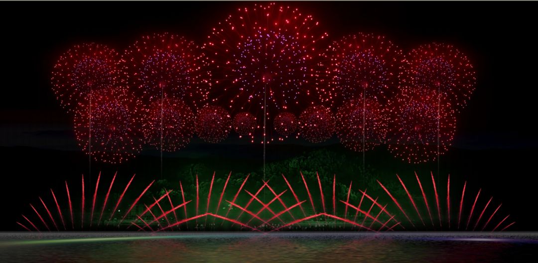 晚会以牛郎织女传诵千年的经典爱情作为焰火燃放的故事背景,寄托了“但愿人长久,千里共婵娟”的美好希望。专属的爱心、水母、变色魔法、变色光环、笑脸,鹊桥等造型点燃爱情的焰火。