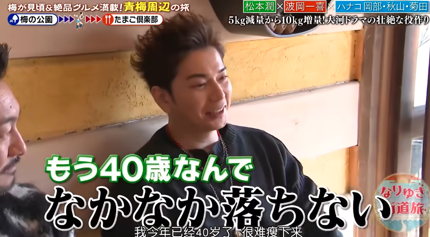 松本润上节目的时候透露现在的身材穿以前的衣服都勉强了,更不必说西装这种严格要求身材的衣服,那是根本穿不上了。