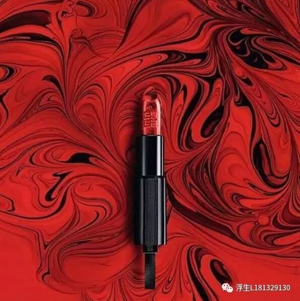 这个系列中最火的色号之一#25 Rouge Revelateur#,红色的膏体中带有被黑色水墨晕染的感觉,黑色部分会变色