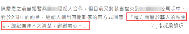 约会画面被直击,台媒联系到陈乔恩经纪人,希望经纪人给予某些进展透露。
