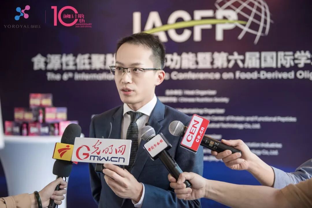 颜如玉CEO钟鹏在食源性低聚肽营养与功能暨第六届国际学术研讨会现场接受媒体采访