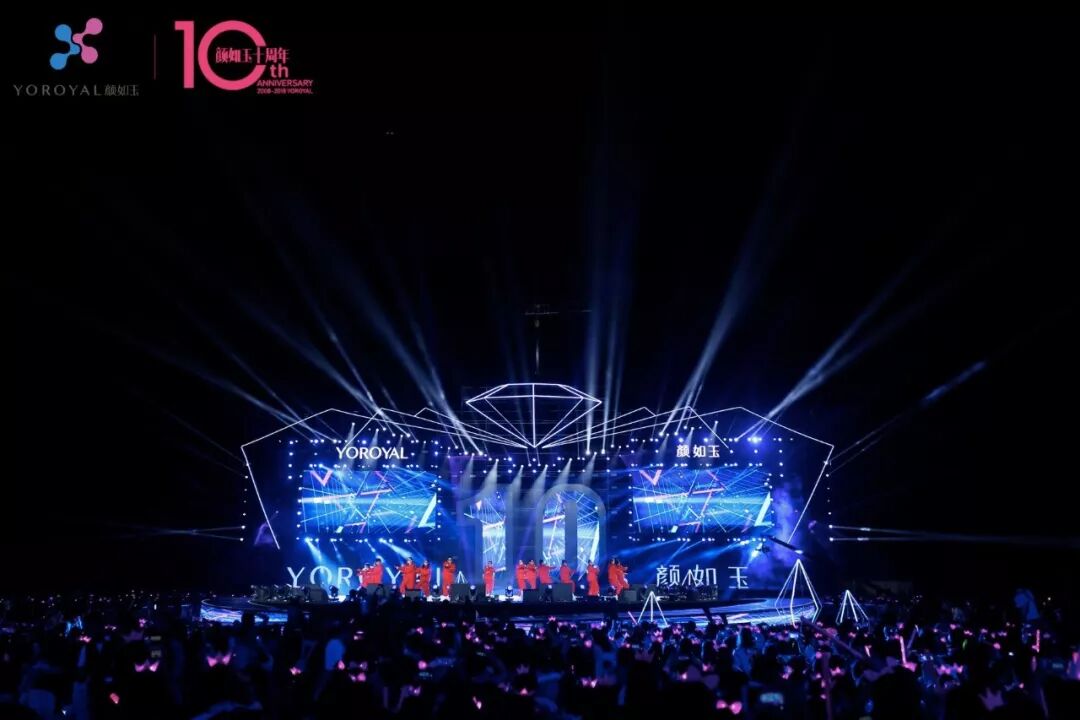 2018正值十周年之际,颜如玉为全球经销商献上了一场十周年荣耀盛典暨超级明星演唱会,包括王力宏、张靓颖、林志炫、陈小春、李荣浩、方大同、毛不易、戴佩妮、郑希怡在内的众多一线明星齐聚一堂,让颜如玉的经销商在三亚尽享视听盛宴。