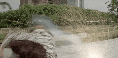 《皇家师姐》里有她飞奔扒车的镜头,《警察故事3》里的追车戏,更是让成龙都悬着一颗心。这个从货车顶上滚落,重重摔到跑车挡风玻璃上的镜头,她甚至连威亚都没有。