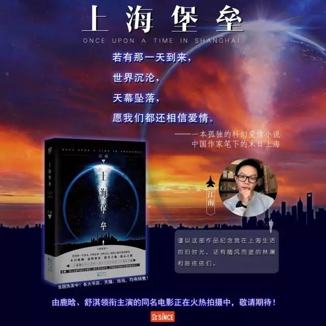 我想到了最近看的一本书,江南的《上海堡垒》。当初被这书吸引是因为刚失恋不久的我在书店中无意看见了这本书,书封上赫然写着“若有那一天到来,天幕坠落,世界沉沦,愿我们都还相信爱情。”