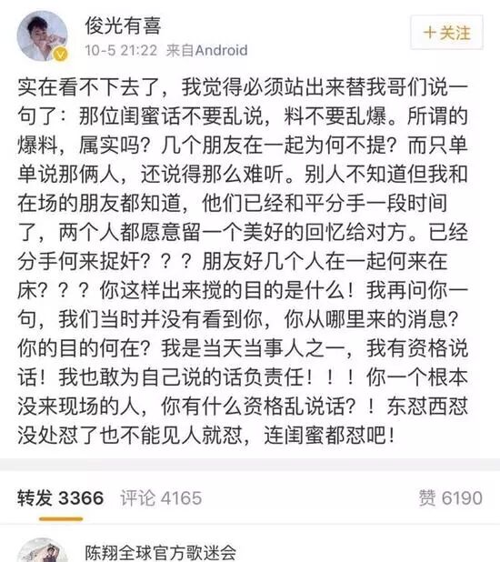 陈翔多年好友在去年“实在看不下去了”的辟谣中,说当晚是一群人去陈翔家,不止江铠同一个。该辟谣遭网友翻出,质疑其真实性:反方有点诚意好吗?至少补上一张小伙伴们火热爬楼梯的画面嘛。一群人都爬楼梯,就留着男女主角坐电梯?