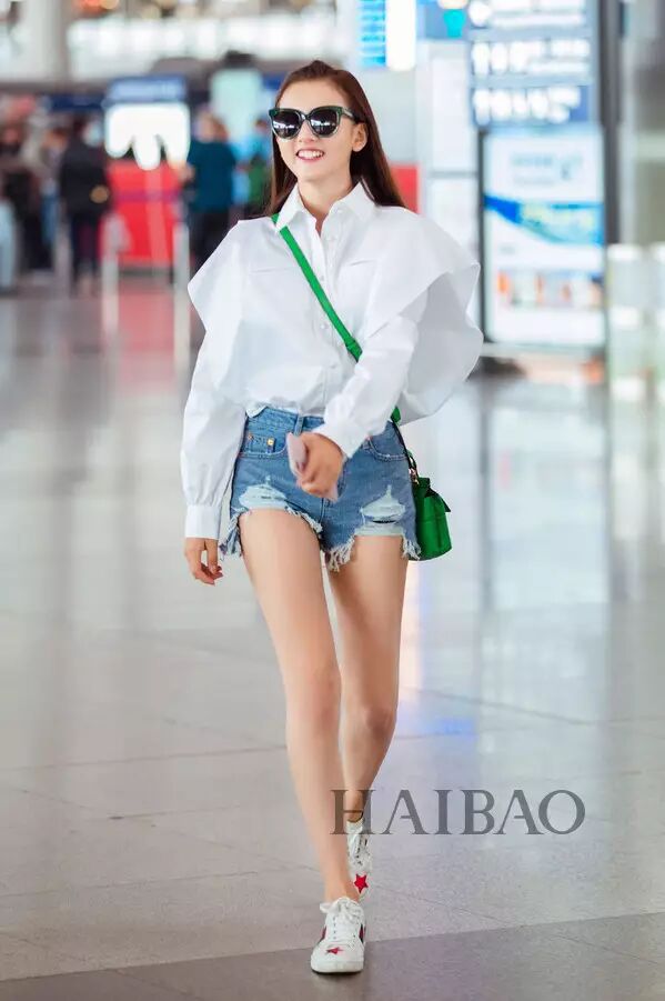 到了清爽的露腿季节后,宋祖儿在穿搭上更用心了。白色荷叶边衬衫+毛边牛仔短裤+小白鞋很适合一脸青春气的她,挎包的绿色和墨镜相呼应。