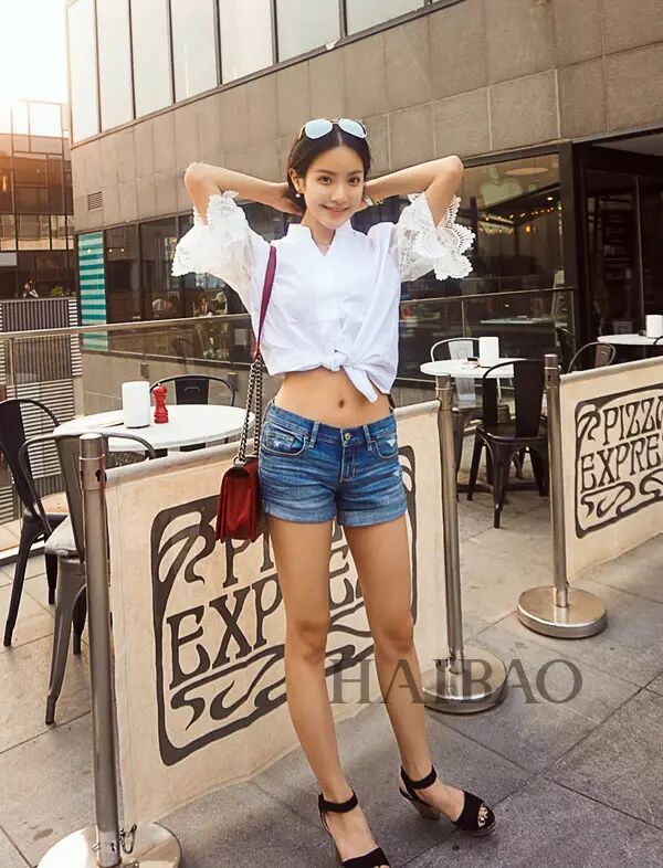赖雨濛的总身高虽然不高,但身材比例很好,有细腰有长腿。用白色衬衫搭配牛仔热裤,打造出两米长腿既视感!