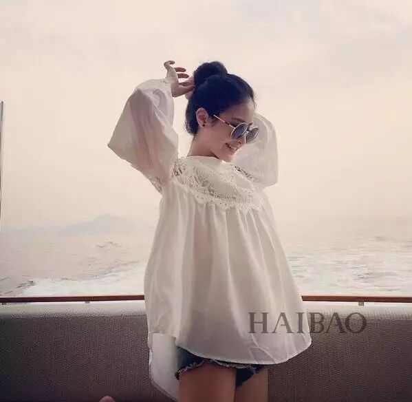 赖雨濛平时也喜欢穿白色,白衬衫、白色娃娃上衣、黑白条纹针织衫,和她的气质很符合。