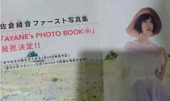 去年人气声优上坂堇的首本写真集《sumipedia》就销量很好,看来各位声豚们还是很买账的。而昨天就有小道消息爆出佐仓绫音的首本写真集《AYANE’s PHOTO BOOK(仮)》将在明年的1月29日,也就是她生日当天发售。