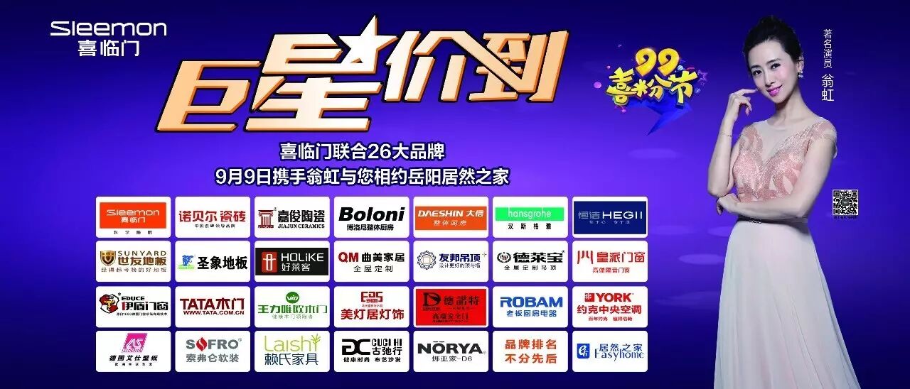 今天,女神翁虹亲临居然之家岳阳店喜临门9.9喜粉节!与岳阳人民浪漫相约!
