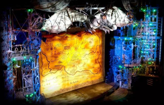 舞台上另一个硕大的道具就是“巨龙之钟”了,悬挂在舞台上上方的龙钟每当摆动头颅的时候,奥兹国就要有大事发生!在装台的5天时间中,龙钟是第一个组装的部件,因为它实在太庞大了,足足有一架小型飞机般大小!