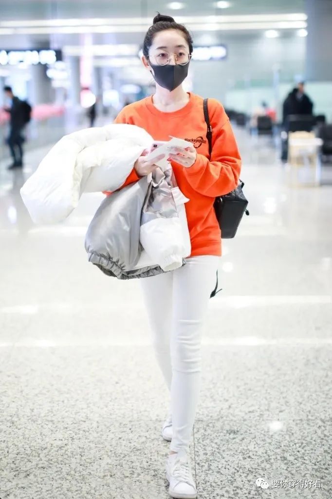 近日,蒋梦婕现身机场,橘色卫衣搭配白色休闲裤,一身运动装扮朝气蓬勃,元气满满,为这个寒冷的冬天增添了一抹暖色。