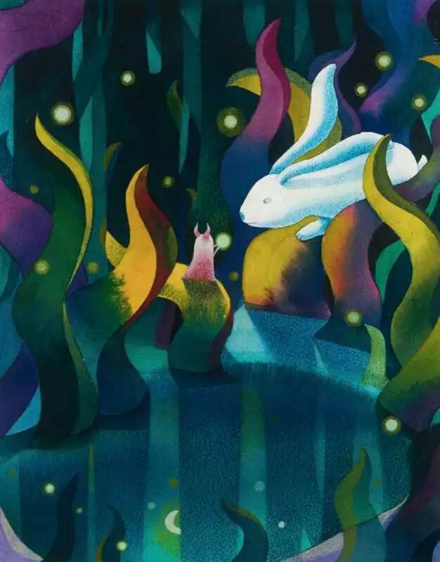 而月亮,便是一种希望,一种憧憬,沿途中遇到的形形色色的插画角色,都是生活中的暗示,鹿,比喻灵感,生活中遇到困苦煎熬的指向标,猫则是陈思佚自身养有一只英国短毛猫。