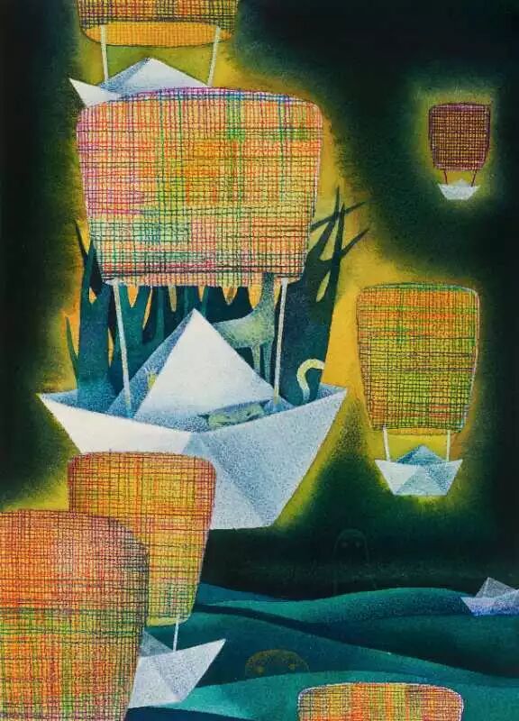这或许跟他的童年有一些关系,小时候卖过茶卖过桑叶捉过鱼,为挣钱做过很多很特别的事,黑暗可能表示他心情很不好或者经历了一些很伤心的事。但他又不是封闭内心的,事实他很透明地把一切心情的色彩都表现在作品里面。你不用费力的去猜测它背后是什么,隐藏了什么,因为情绪本身蕴含着神秘,加之陈思佚对于色彩的把握和控制力,也成功地共情,也充满了治愈。