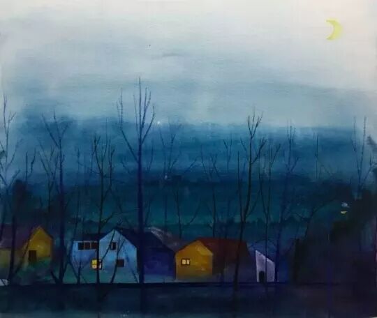 陈思佚的水彩画孤独纯净并不费力去理解,色彩有些迷离迭代,有点夜色昏沉,又像掉入迷途深渊,又像独蹰荒林,就如同内心深处的影子一样,有我们脑海中曾经出现过的场景但又是经过一番改造的,也变地跟我们认识的世界有所不同。