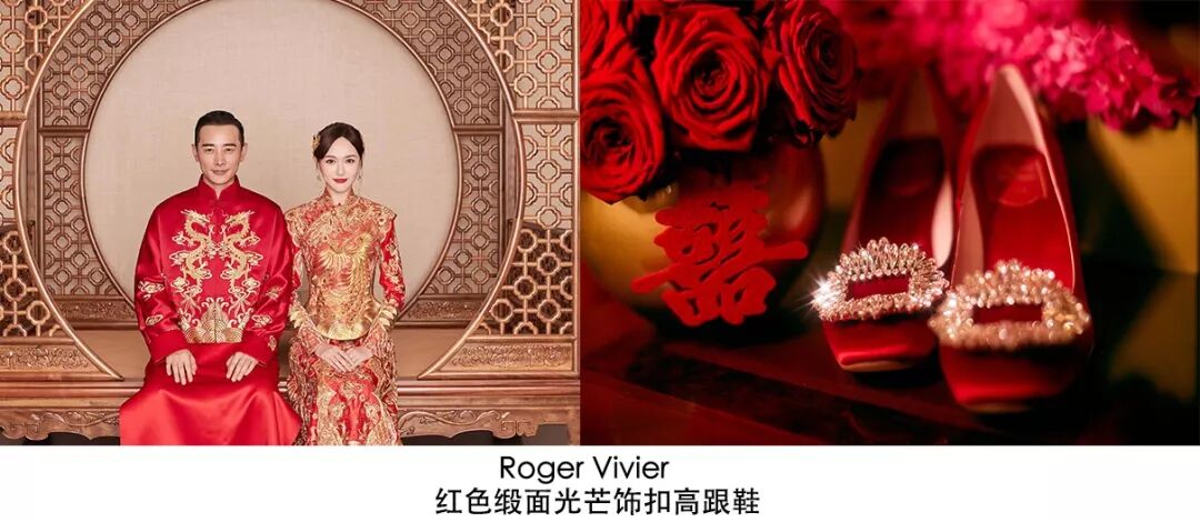 由著名设计师郭培高级定制红底金绣凤凰的真·凤冠霞帔和Roger Vivier水晶鞋你都有