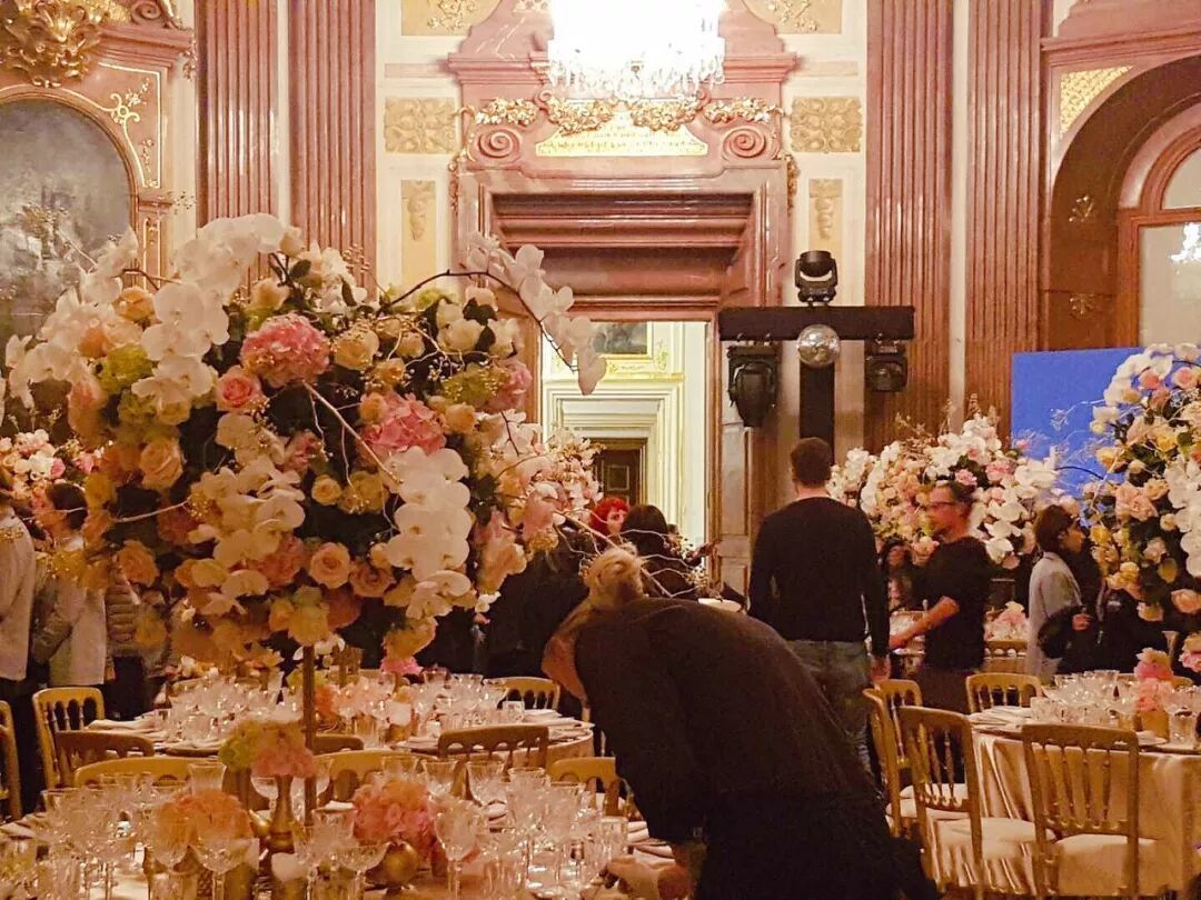也就在维也纳时间的当晚19:28,带着“去爱吧”的祝福,婚礼晚宴在布置了满满鲜花的礼堂举行
