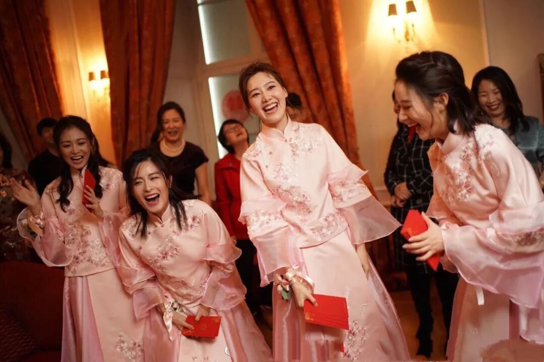糖糖打从出道以来的多年好友徐百卉,郭晓婷,陈钰琪,王冠组成仙女伴娘团
