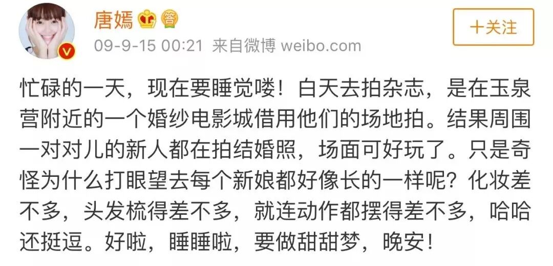 很多年前,唐嫣看着别人的婚礼,说着自己“要做甜甜的梦”