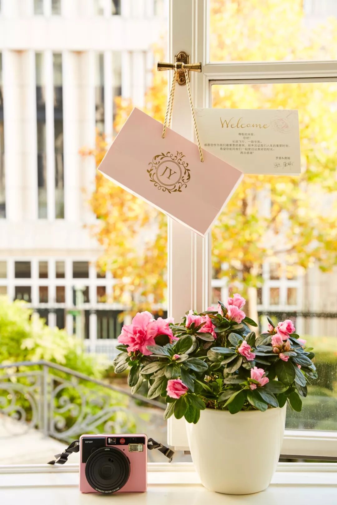 给来宾的welcome gift是经典也粉红到底的徕卡拍立得
