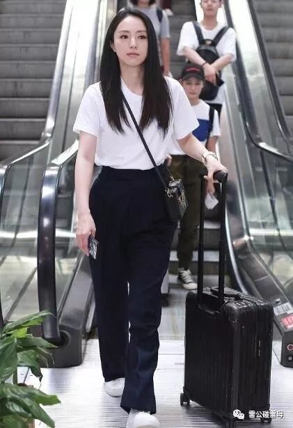 那么董璇的这一组短发造型究竟比长发好在哪里呢?让我们还是从她之前的那一头长发造型说起,如图,一头飘逸的大长发,配上白色的T恤和深色的休闲裤,小白鞋的时尚加持,整个人看起来是干干净净!一手推着行李箱,一手拿着手机,整个人的面部也比较的平淡,这在她的所有造型中也只能算的是正常水平吧!