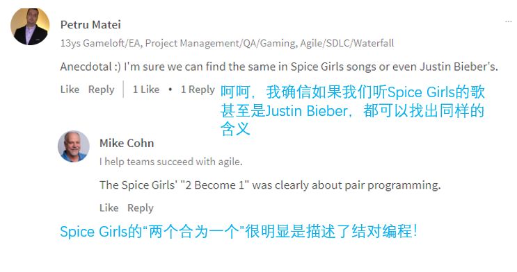 将歌词寓意与敏捷结合的方式,瞬间吸引了一票敏捷小伙伴的注意,他们纷纷在Mike Cohn老师的博客下面留言: