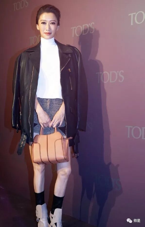 出席活动时谢婷婷身穿白色高领毛衣加灰色短裙,高腰的设计显得腿部格外的修长,穿着的黑色长袜可以修饰腿部的线条,使双腿更显笔直。外加一件黑色皮外套,有一种酷酷的个性风。
