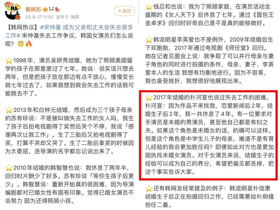 所以因为结婚有孩子导致娱乐圈的女演员都那么做、影响了事业,更何况是在大环境下人们对女性的偏见呢,这才是真正的不公正待遇啊。