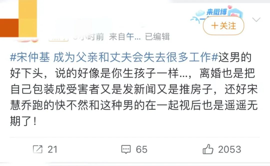 而且结合宋仲基那段发言,有网友猜测他的意思应该是耽误了他今后的影视剧和其他女主演炒CP的情况。