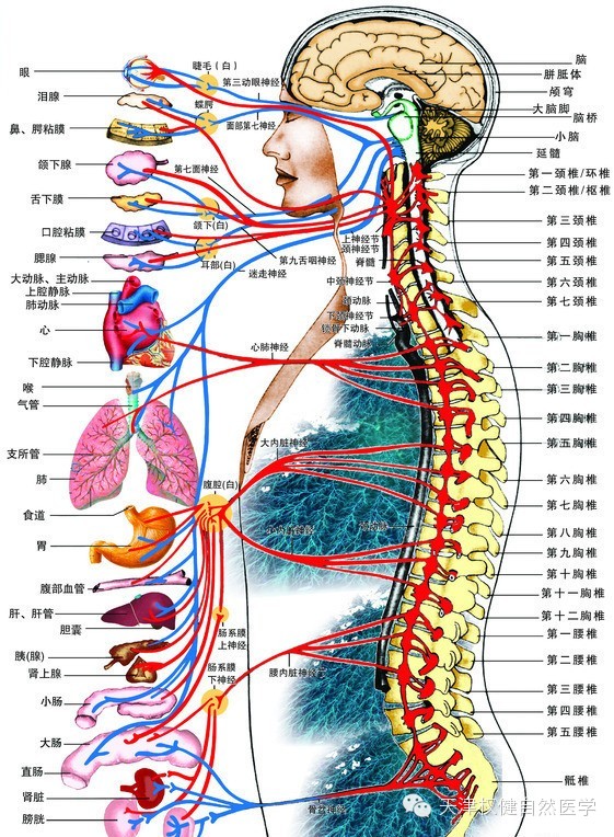 我们从脚向上逆推,足部骨骼变形就会影响踝骨,再向上就会影响膝关节,再向上就会影响髋关节,再向上就是人体最重要的脊椎(包括了颈椎和腰椎部分),而脊椎中又包裹着中枢神经,所谓中枢神经就是说是人体身上最重要的中间枢纽,一旦脊椎发生变形,就会压迫到中枢神经,如果压迫在颈椎部位,轻则引起头晕,失眠,手指发麻,严重点会恶心,甚至全身瘫痪,体操运动员桑兰就是个很典型的例子:她在运动中摔伤了颈椎,导致高位截瘫;如果是腰椎神经被压迫到了,那么轻则感觉下肢发麻,行走困难,重则大小便失禁,双腿瘫痪。在中枢神经的旁侧还有31对神经根,分别连着我们人体胸腔和腹腔内的各个脏器,通过神经根来给各个脏器输送营养,一旦有脊椎发生变形很可能压迫到旁侧的神经根,轻则引起相关脏器的功能下降,重则长期某脏器供血不足,营养不足导致脏器衰竭。