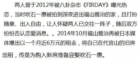 其实两个人早在四年前就已经传出绯闻了,吹石一惠被拍到出入福山雅治的住所。