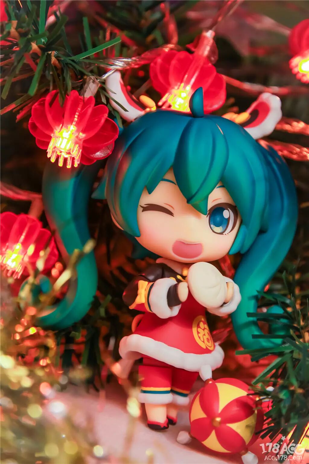 戴着舞狮帽的miku眨着眼睛祝大家新年快乐~~