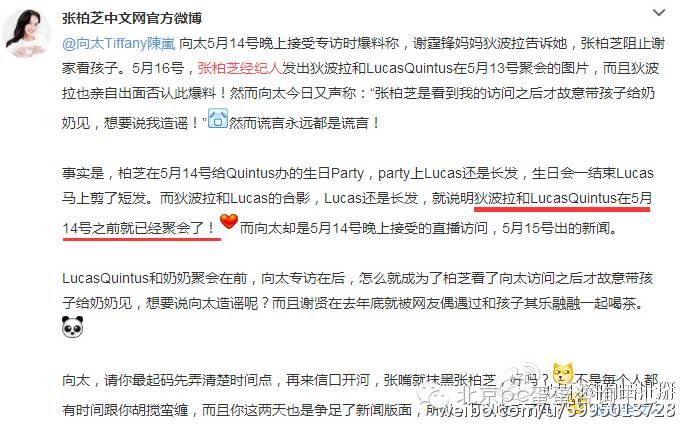 自从张柏芝离婚后,鲜有看到张柏芝孩子与旧婆家的合照,日前在戛纳向太陈太更是放出猛料,称张柏芝阻止谢霆锋一家接触孩子,矛头直指张柏芝。