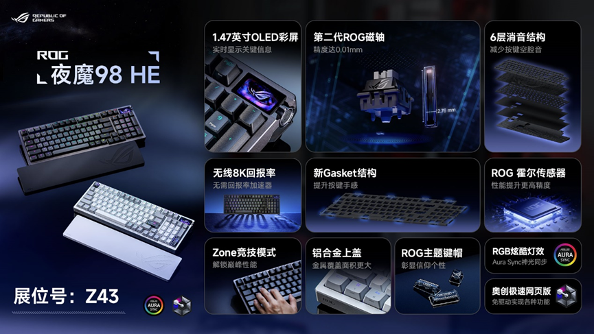 全新ROG 夜魔 98 HE、ROG 夜魔 Extreme Special Editon、ROG 龙鳞 2 ACE、ROG 破风、ROG 棱镜 2即将亮相展会,更有ROG全家桶等你来玩