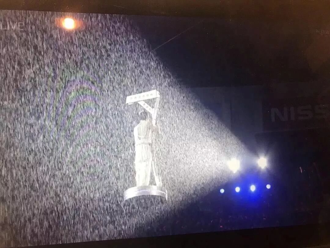 降雨量真的不是夸大其词,用倾盆大雨来描述一点都不为过,甚至聚光灯打在前面映射的都是密密麻麻的雨点。