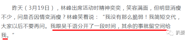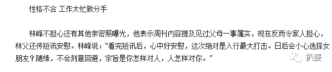 据林峰说,他俩已经分手几个月了。