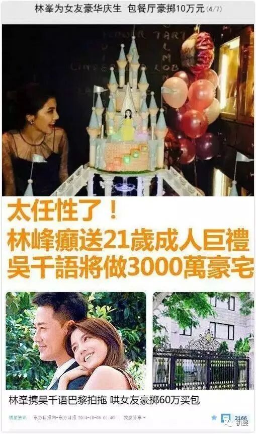 还经常出现吴千语拜金挖空林峰,让林峰给她买豪宅买豪车的新闻(后来证实都是假的,房子车都不存在)。