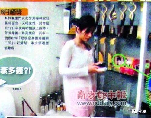 有媒体发现,某名字叫“芳芳”的女生在10年12月(也就是潘霜霜林峰在一起那会儿)公开po了和林峰爱犬的合照图,图片背景里还有林峰得到的各种歌手奖杯,疑似自拍地点就在林峰家。