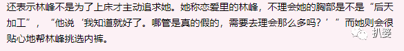 比如她说自己和林峰第一次约会见面就在床上。