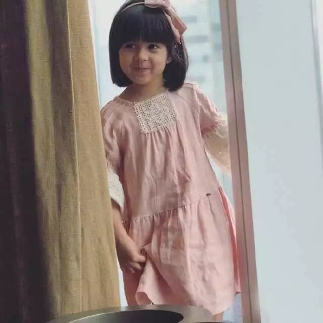 2015年2月28日晚,梁咏琪顺利产下一女。看到照片上的梁咏琪一家三口非常的温馨,他的女儿这个穿着粉色小裙子的可爱极了。粉色连衣裙搭配粉色蝴蝶结发箍,显露出来了小朋友的天真可爱。这位小女孩继承了爸爸妈妈强大的颜值基因,相信等到长大后的她一定是一个漂亮女孩。