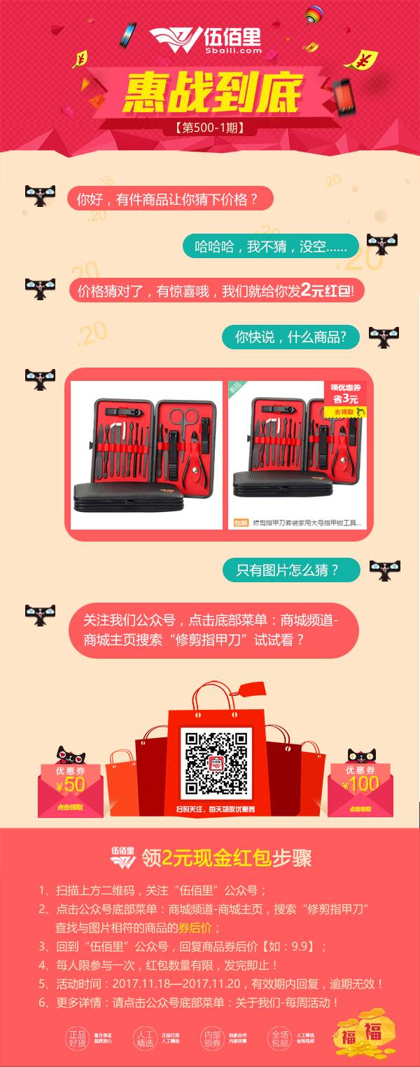 关注公众号即可参与领取现金红包活动,伍佰里每周不定期推出现金红包活动,点击头部蓝色字体,关注即可参与!
