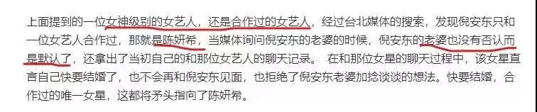 比如VIVI说倪安东曾经亲口承认自己出轨的对象其中一个是“女神级别”的女艺人,而那个时候因为《那些年》的大火,陈妍希在湾湾已经晋升至女神级别。