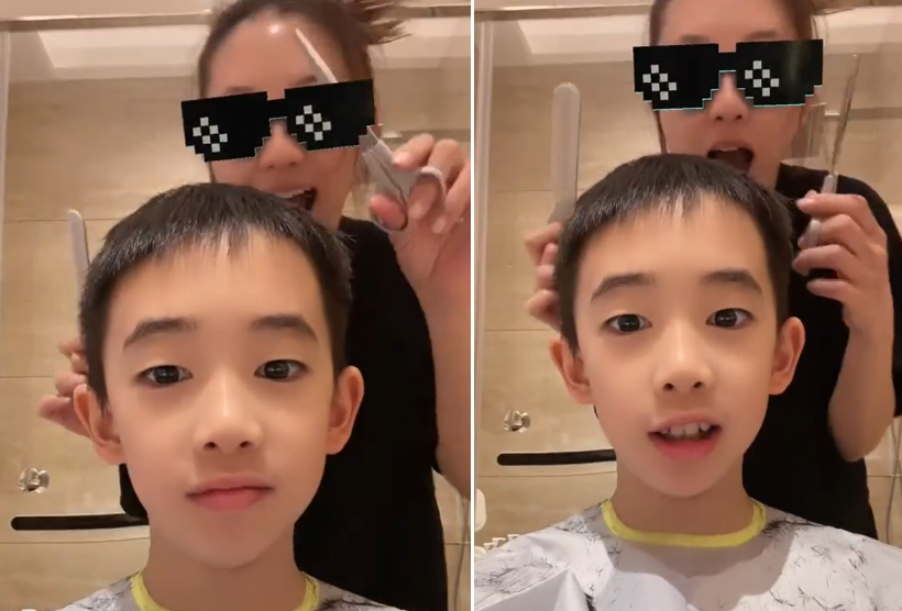 近日,应采儿在某社交平台分享了一条视频,她在家中的浴室帮自己的大儿子Jasper剪头发。拿着剪刀和梳子的应采儿站在Jasper身后摆出一些搞怪的动作,Jasper则是一脸无辜,但看上去对妈妈很放心。