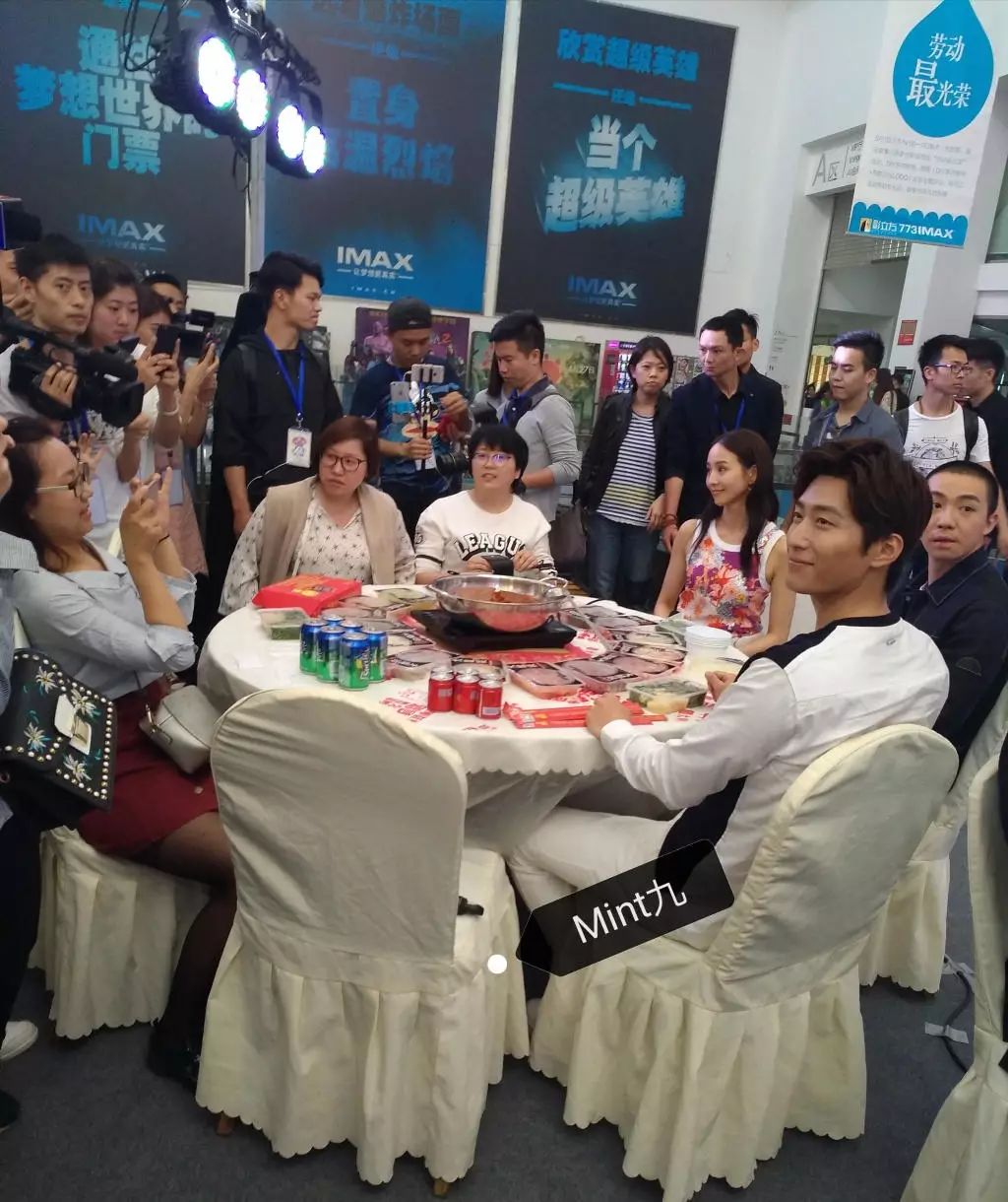 现场火锅摆起,煮得咕咚咕咚飘香,窦骁、张钧甯、俞灏明,三个到场主演毫无架子,直接走入席间几人围一桌,热热闹闹,虽为见面会,倒破了往常电影宣传的严肃,使得整个现场因为饭桌的原因,显得格外的活泼。
