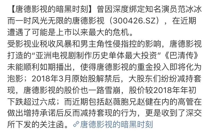 至此以后,《巴清传》未播先凉,被电视台退货,出品公司唐德影视因此股价大跌,损失惨重。