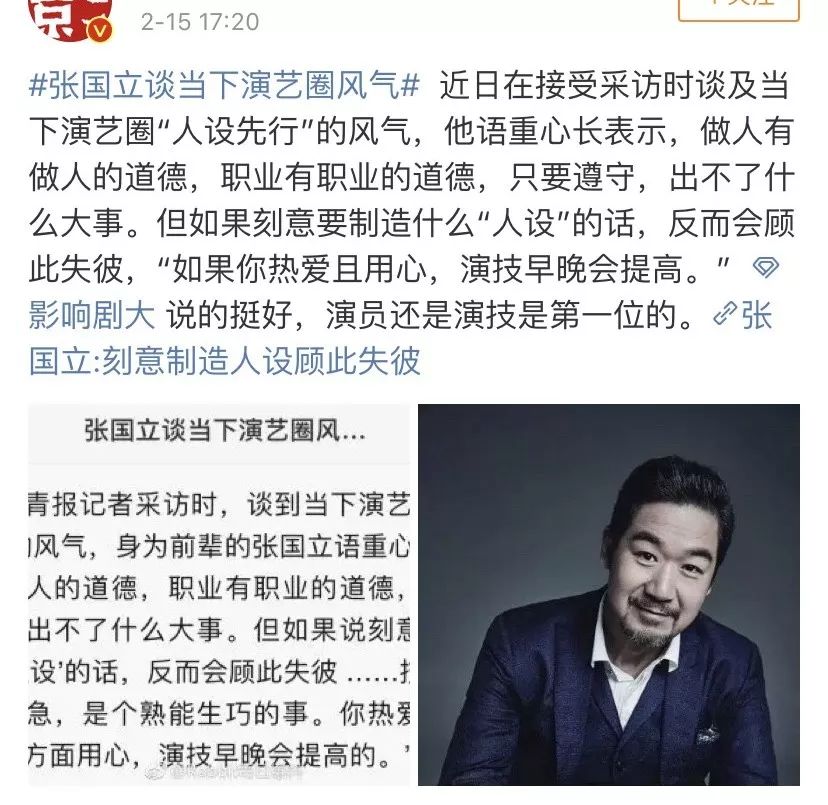张国立也说过“做人有做人的道德,职业有职业的道德。”