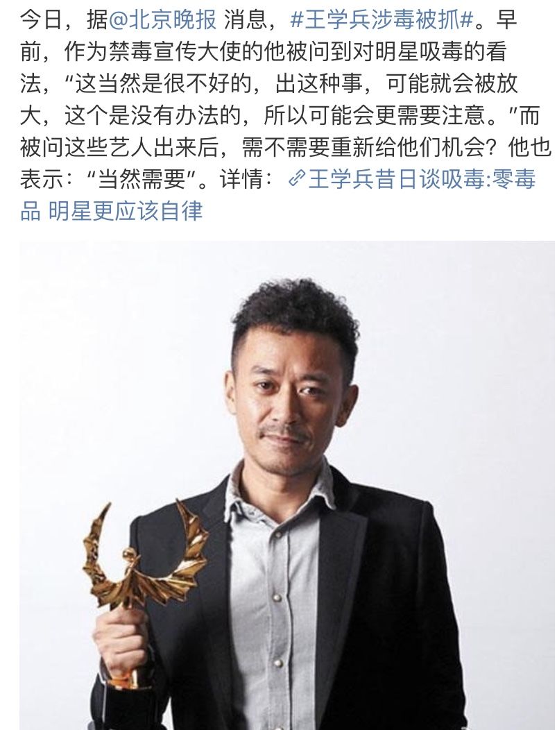 作为曾经的禁毒宣传大使,王学兵居然自己跑去吸毒了!