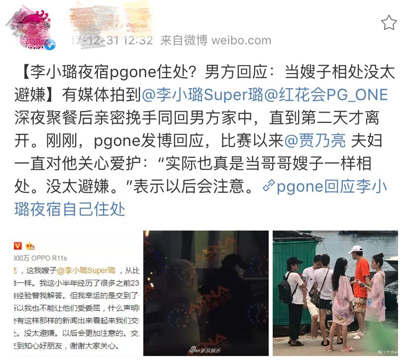 女主角李小璐出其不意承担了2018年的开年第一瓜:深夜夜宿PG one家。