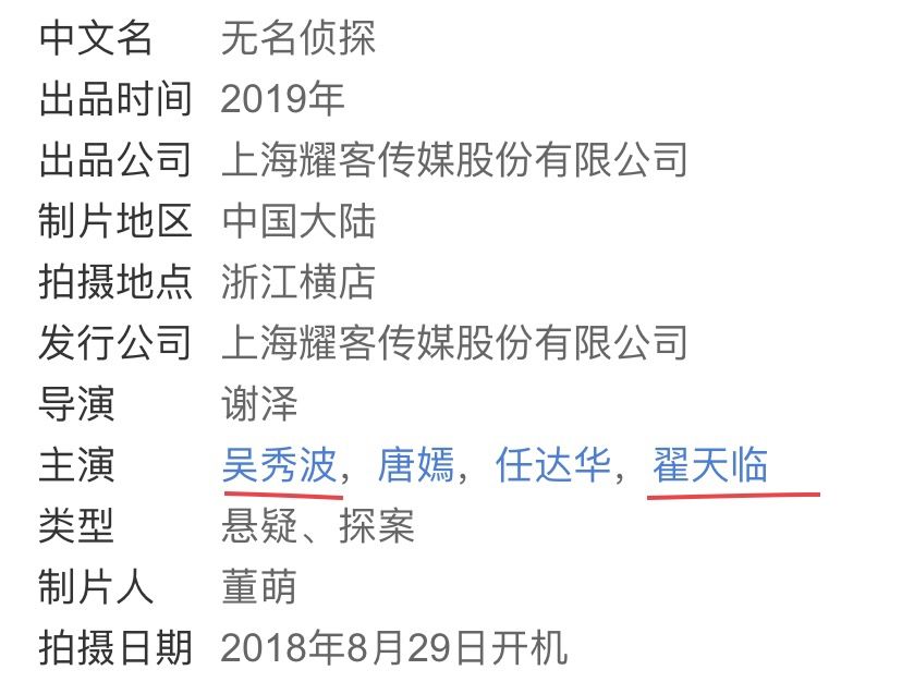 上面提到的《无名侦探》,其实除了吴秀波,还有另外一位“污点艺人”翟天临也加盟了该剧。